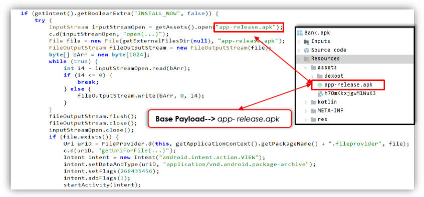 The dropper leverages Android’s FileProvider functionality to generate URIs and uses the INSTALL_NOW flag to bypass user interaction during the installation process.
