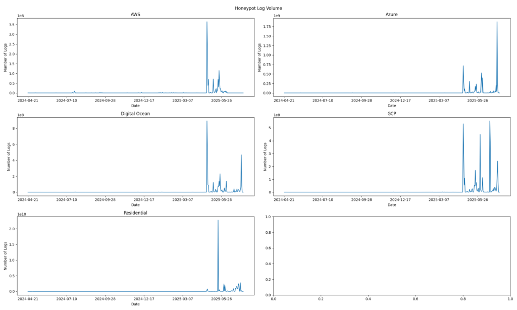 The surge represents a significant departure from historical norms, where honeypots typically maintained consistent but moderate log volumes.