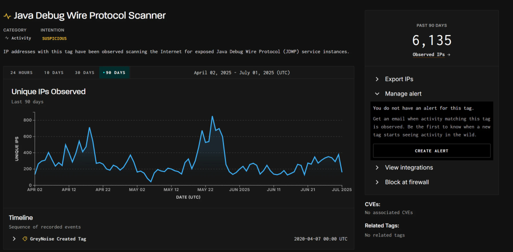 Further analysis, including GreyNoise data, revealed over 6,000 unique IPs scanning for JDWP instances in just 90 days.