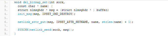 To delete a bitmap set, we can send command IPSET_CMD_DESTROY with desired set name.