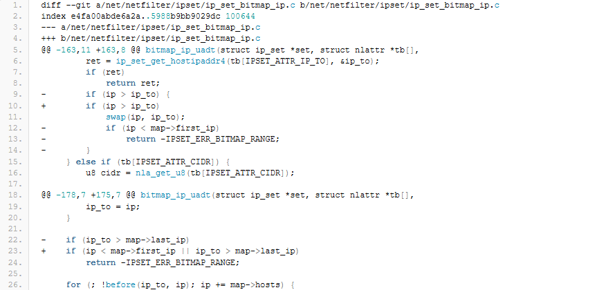 The vulnerability resides within the bitmap_ip_uadt function in the net/netfilter/ipset/ip_set_bitmap_ip.c file, specifically in the CIDR (Classless Inter-Domain Routing) handling logic.