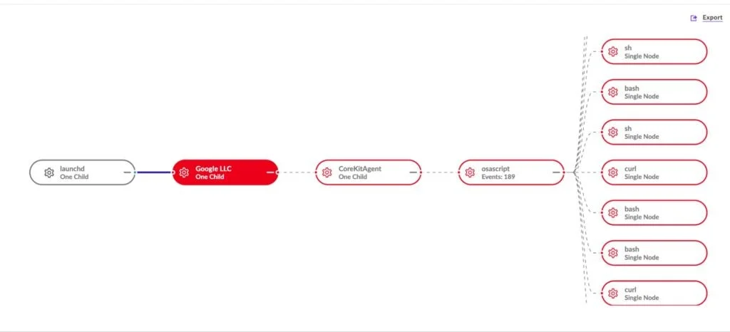 Beyond binaries, the attackers widely deploy AppleScript, both for initial access and as lightweight beacons and backdoors.
