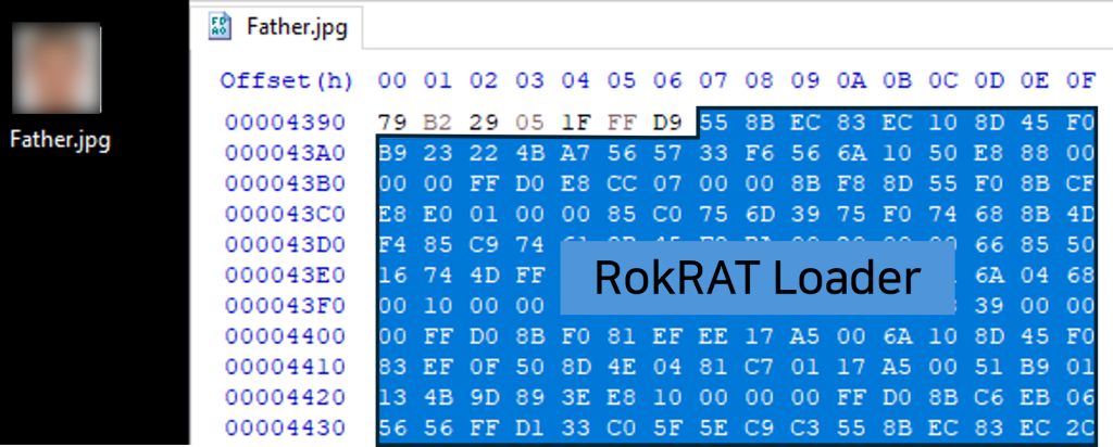 Despite its image file extension, this file contains embedded shellcode designed to load the final RokRAT payload directly into system memory.