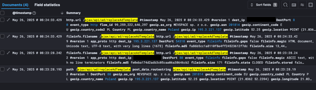 On May 26, 2025, honeypot systems detected several exploitation attempts from a Polish IP address (195.3.221.137), confirming real-world attacks.